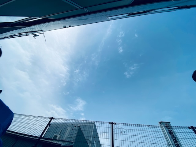 子どもたちと同じ姿勢になってみると、とてもきれいな青空が見えました👀