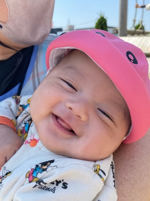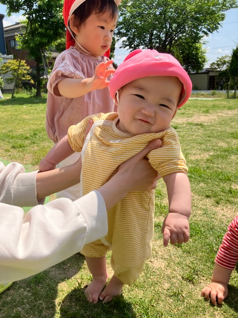 初めて被る保育園の帽子は、まだまだブカブカですが、外で色々なものを吸収しているようです😊