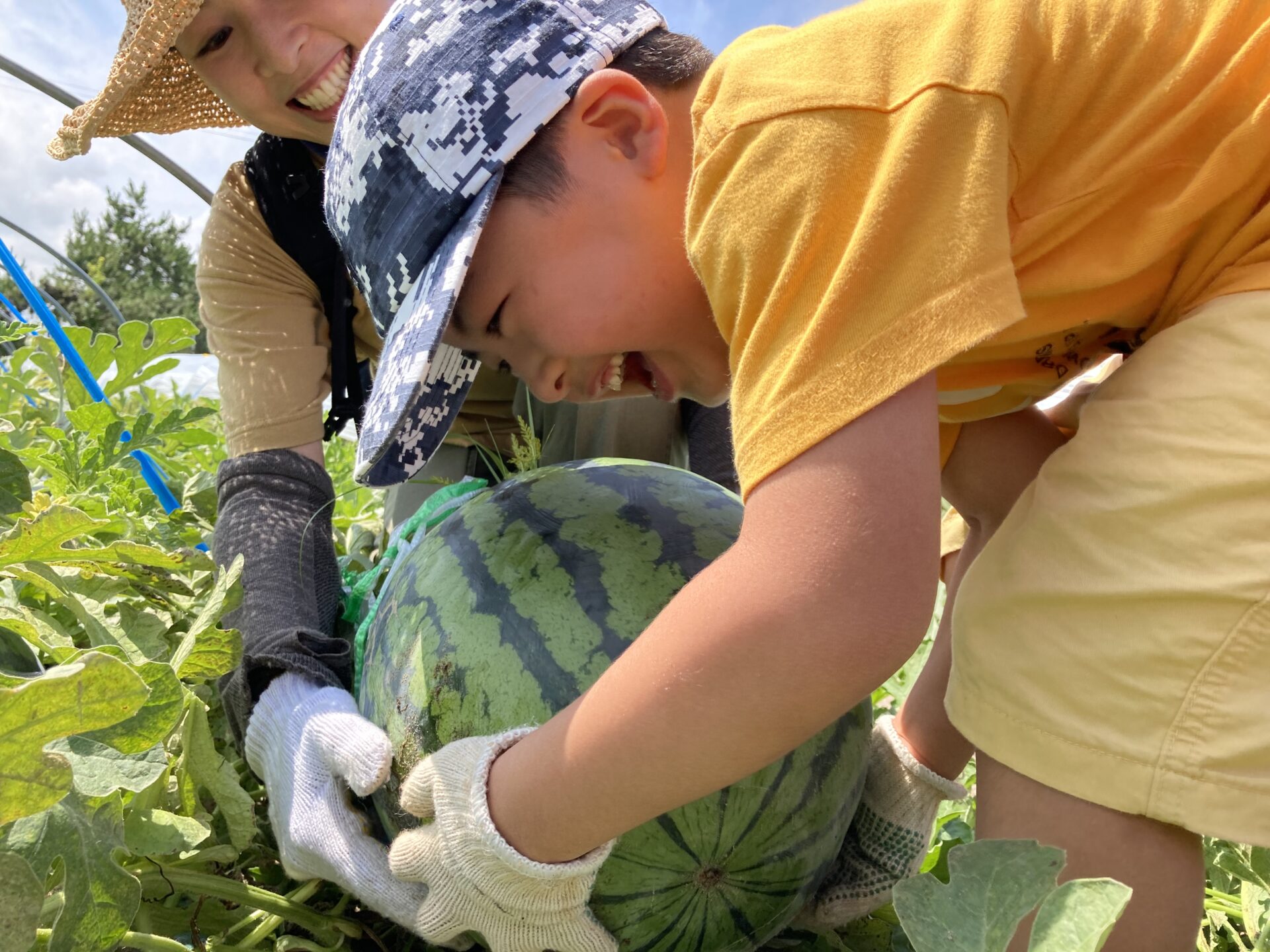 昨年までは、小玉すいかという種類で、一玉2キロくらいのものを、子どもだけで収穫に行っていました。