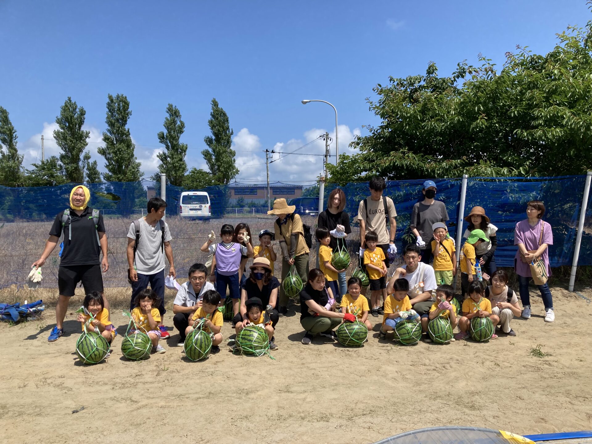 10キロ越えのすいかは、子どもたちでは持ちきれず、おうちの方と協力して運びました。