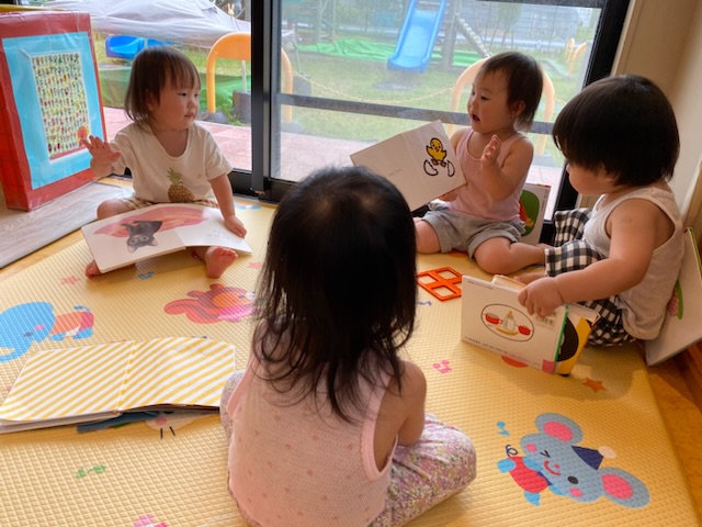 自分で好きな絵本を選び、絵を見たりページをめくることを楽しんでいます😊