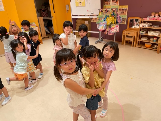 連日の暑さで戸外に出られない日も多いですが、そら組(4歳児)の子どもたちは室内で友だち同士のかかわりを深めながら過ごしています。