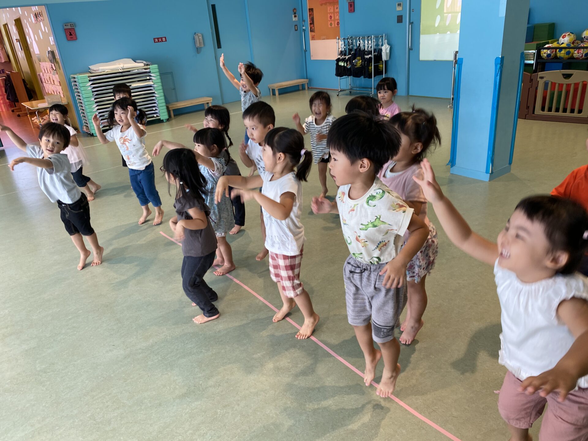 そんな思いを満たせるよう、室内のホールで体を動かすあそびを楽しんでいます💡
