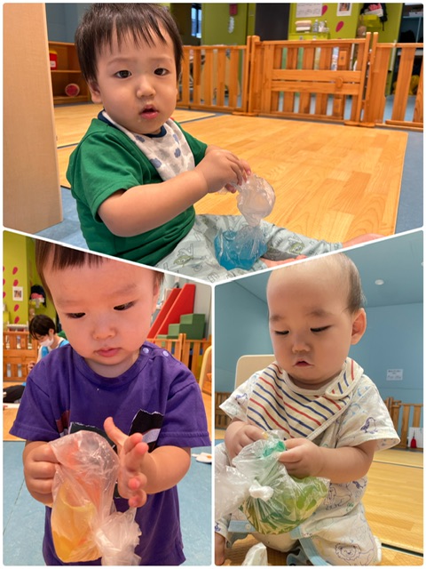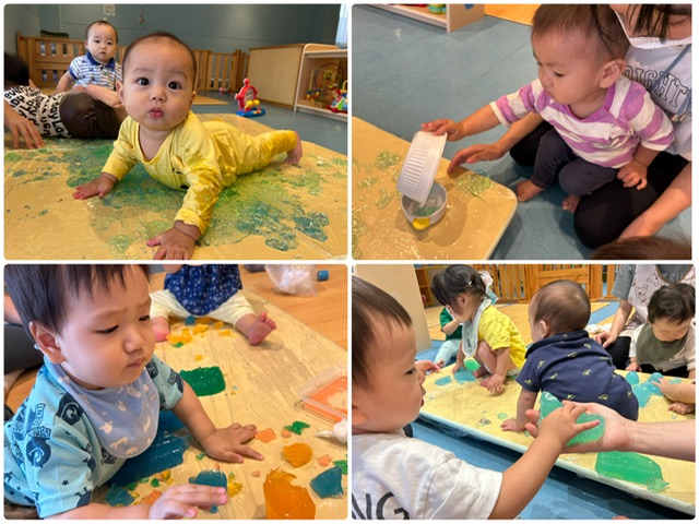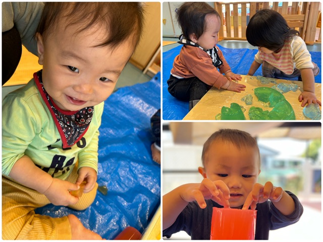 プルンプルン♪寒天あそび!(0歳児すいか組)