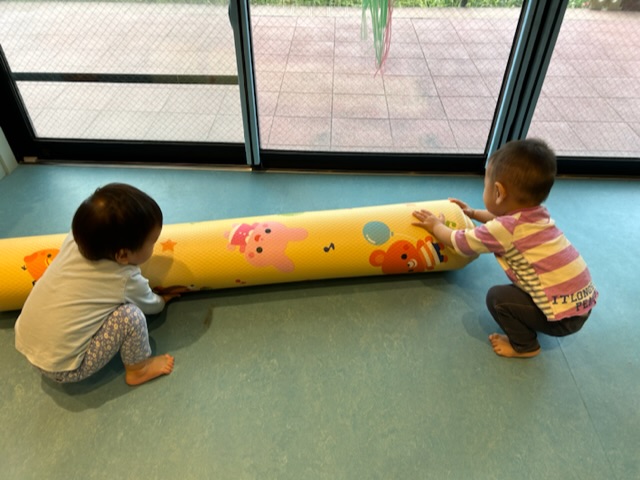 マットを巻き巻きして手伝ってくれる子どもたち🤗 ヨイショヨイショ!