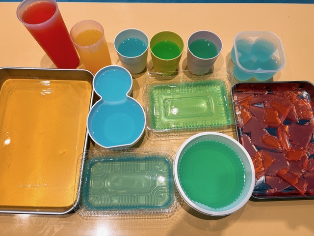 フードカラーで色をつけた寒天に、「これは何??」と興味津々😳