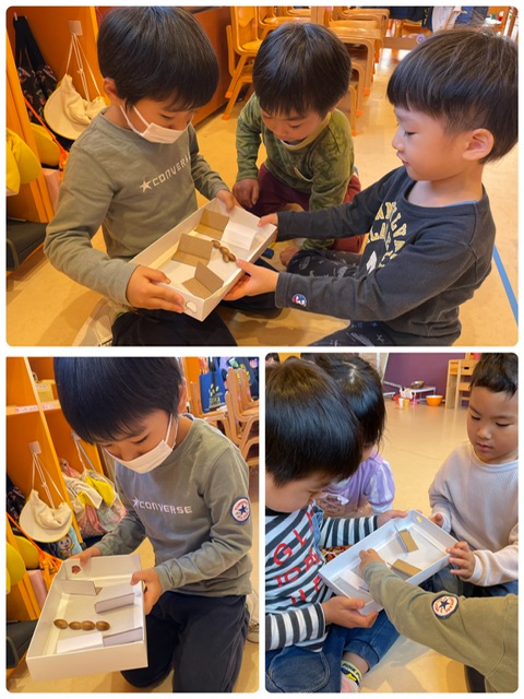 これから冬になり室内で過ごすことが多くなりますが、季節を感じられるような、あそびをたくさん取り入れていきたいと思います。