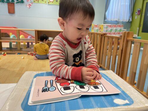絵本に出てくる動物や食べ物、言葉も少しずつ覚えている子どもたちに成長を感じます。