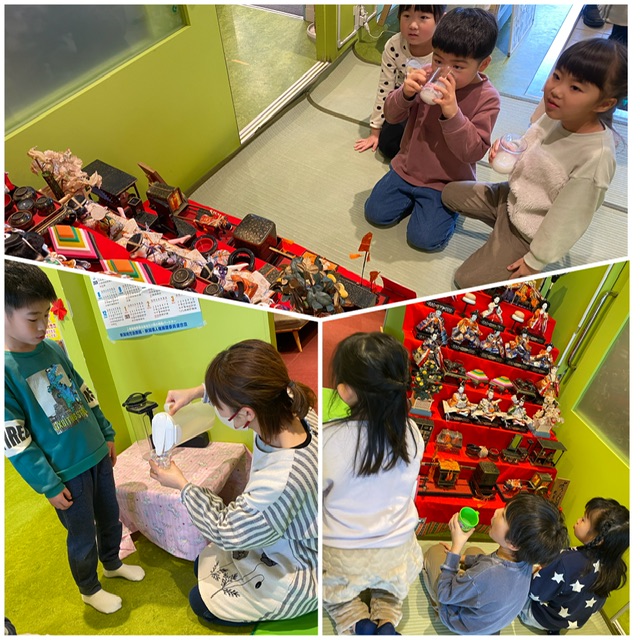 ひな壇に飾られている人形を見て、「ヒゲがながーい!」「この人たいこ持ってる!」など、よく見て気づいたことを口々にしていました。