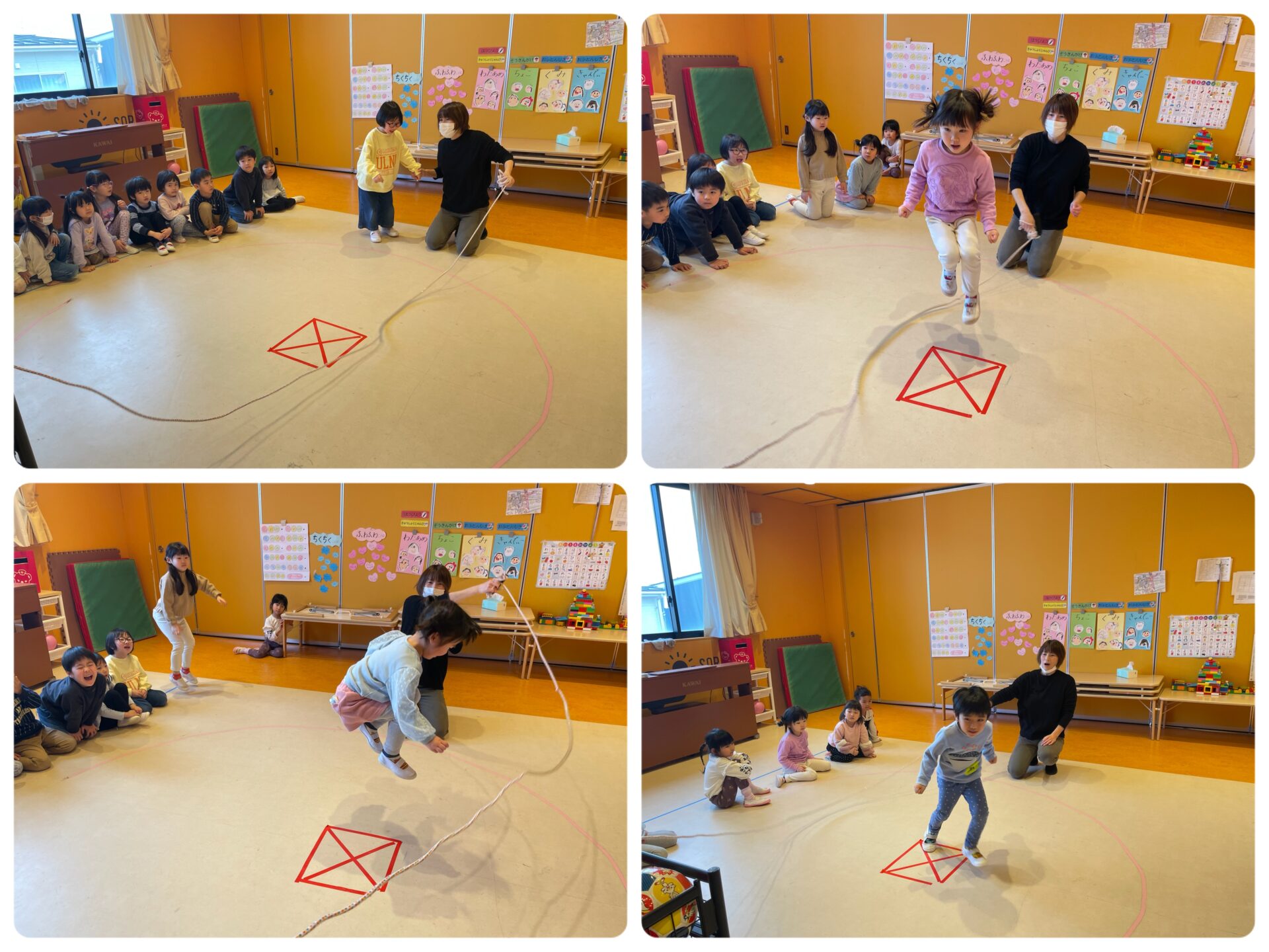 秋の頃に比べ今では、跳べなかった子が跳べるようになったり、連続30回跳べる子もいたりと楽しさが伝わってきます🍀