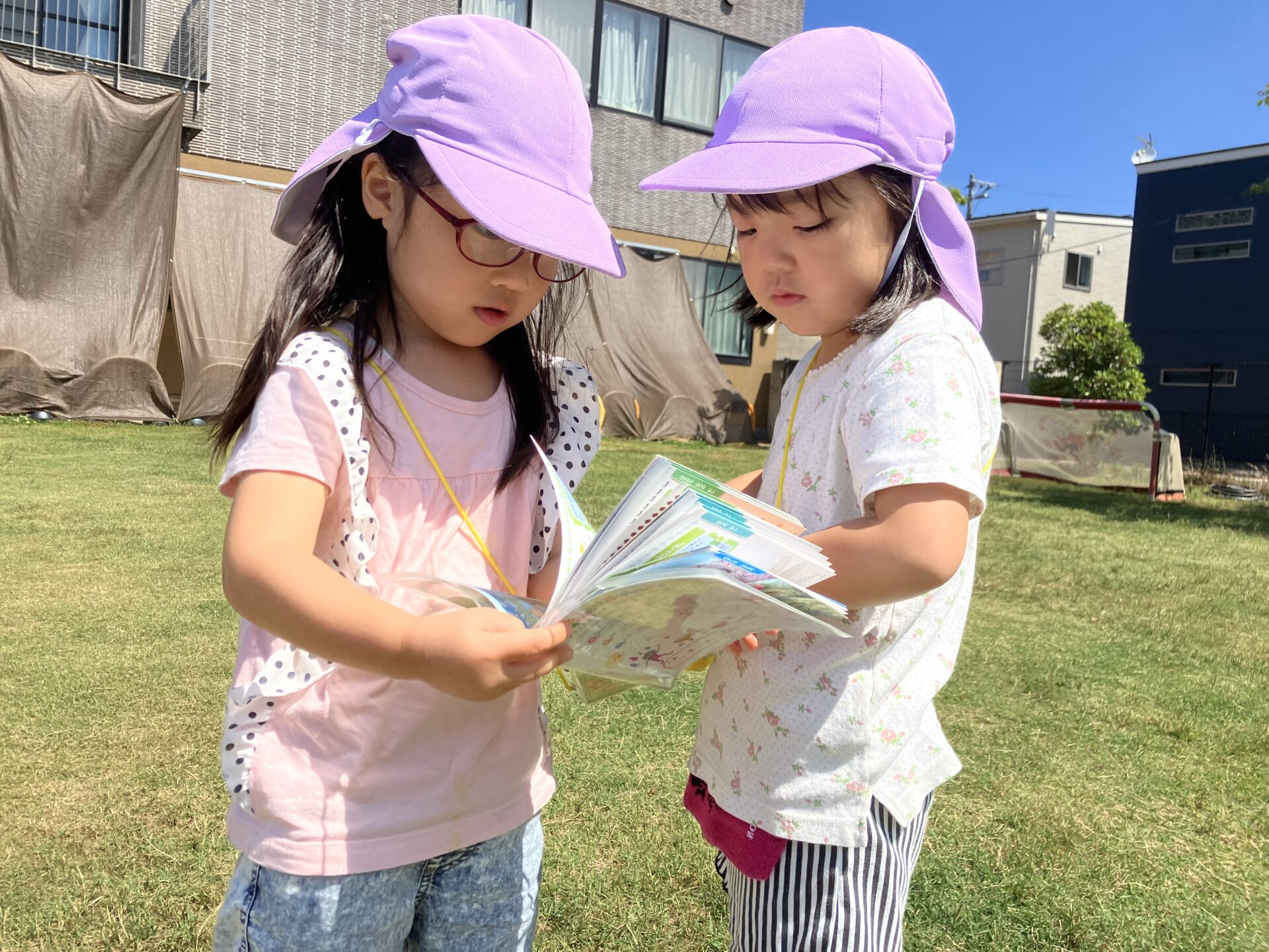 ダンゴムシや小さなイモ虫など、、、よく観察して「触覚がある!」「足がいっぱい!」など、友だちと一緒に楽しんでいます!図鑑を用意して新たな発見もたくさんあります🍀
