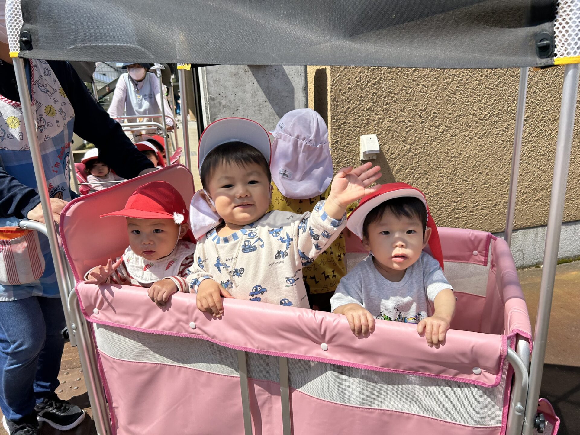 お散歩中は『♪さんぽ』や『♪チューリップ』など、可愛い歌声が聞こえてきます♬