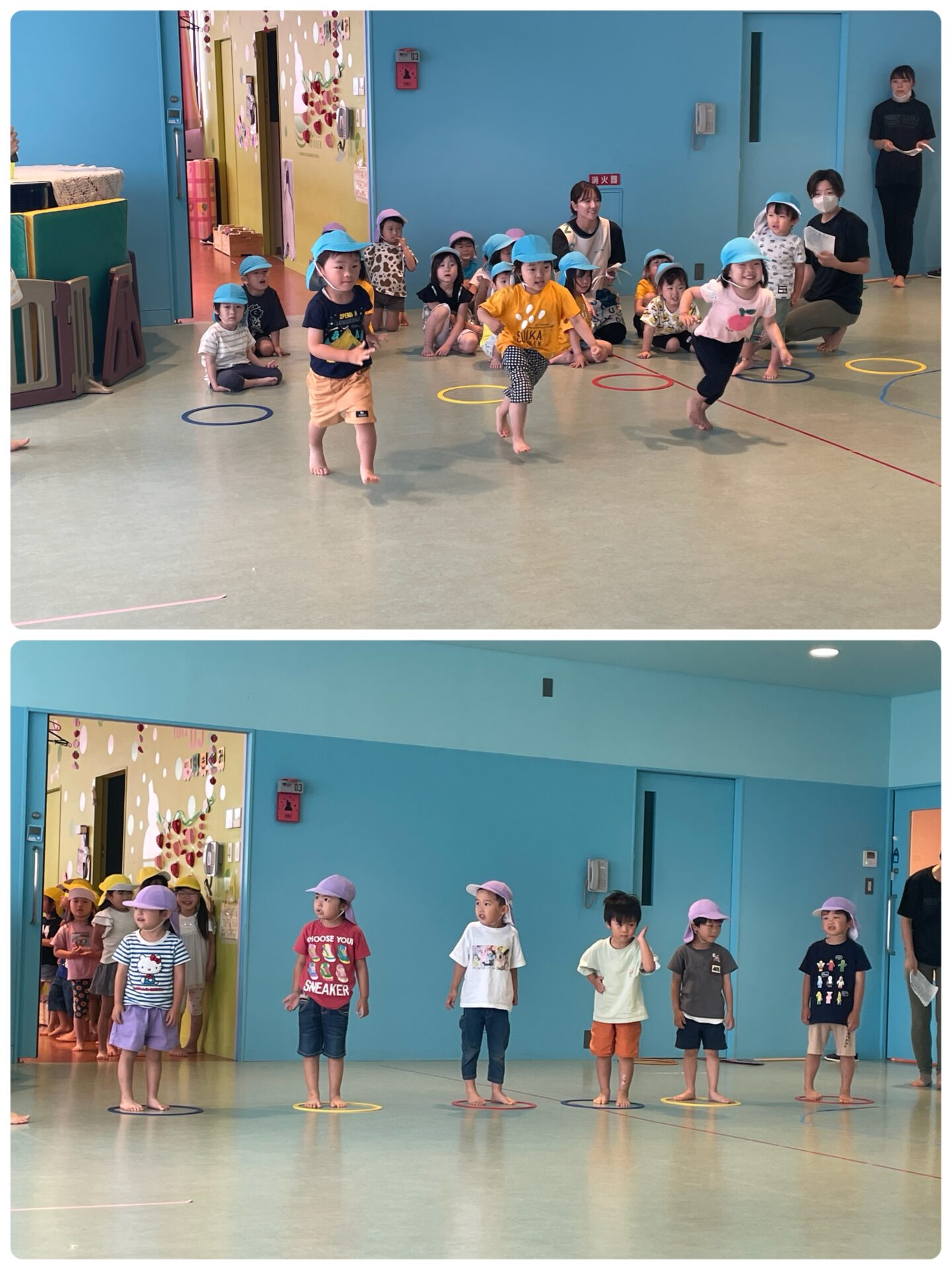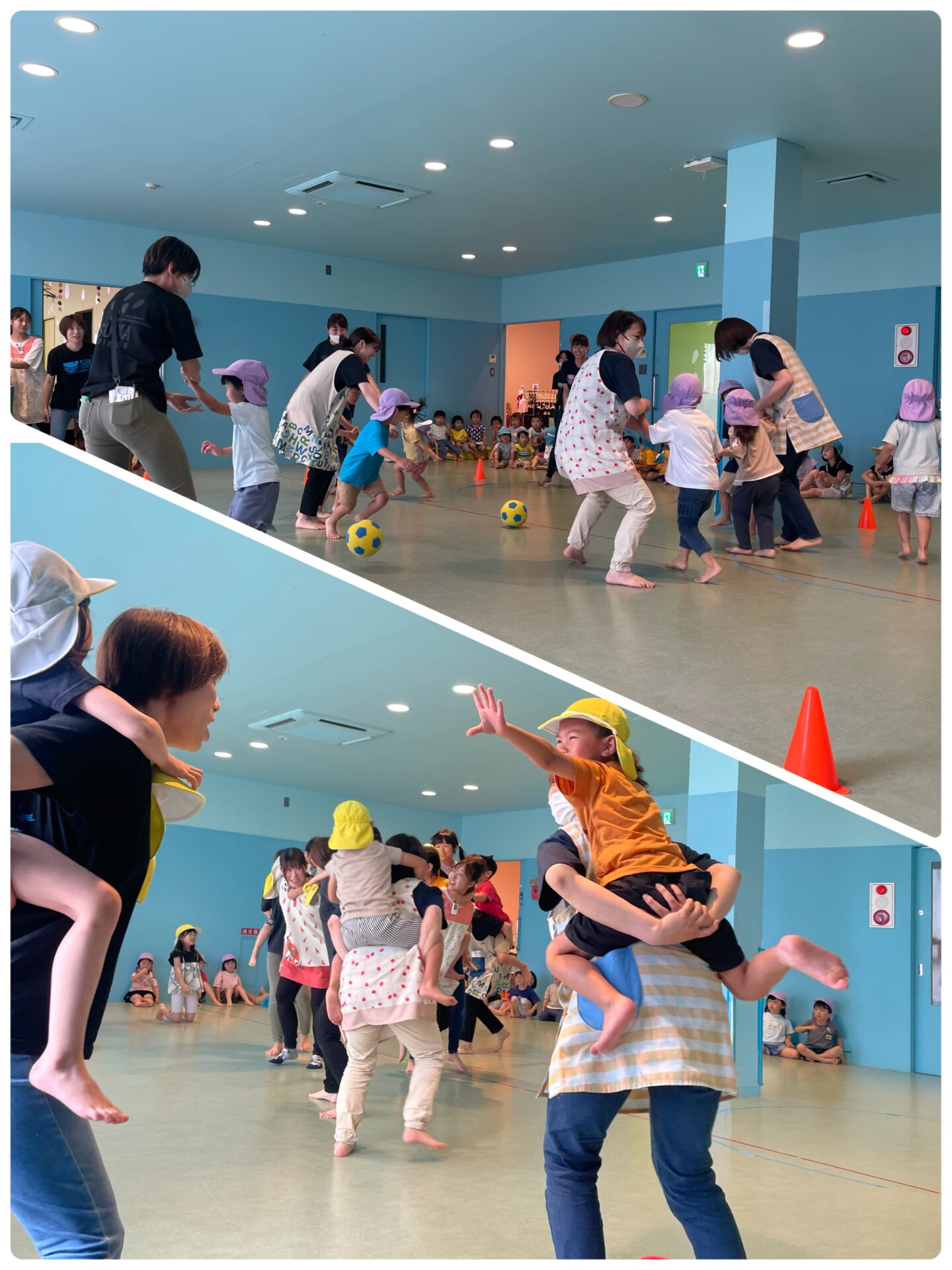 全プログラム、本番さながらに頑張った子どもたち。子どもたちのやりたい、頑張りたい気持ちに応えるように、プログラムの親子競技では保育者も全力で取り組みました✨