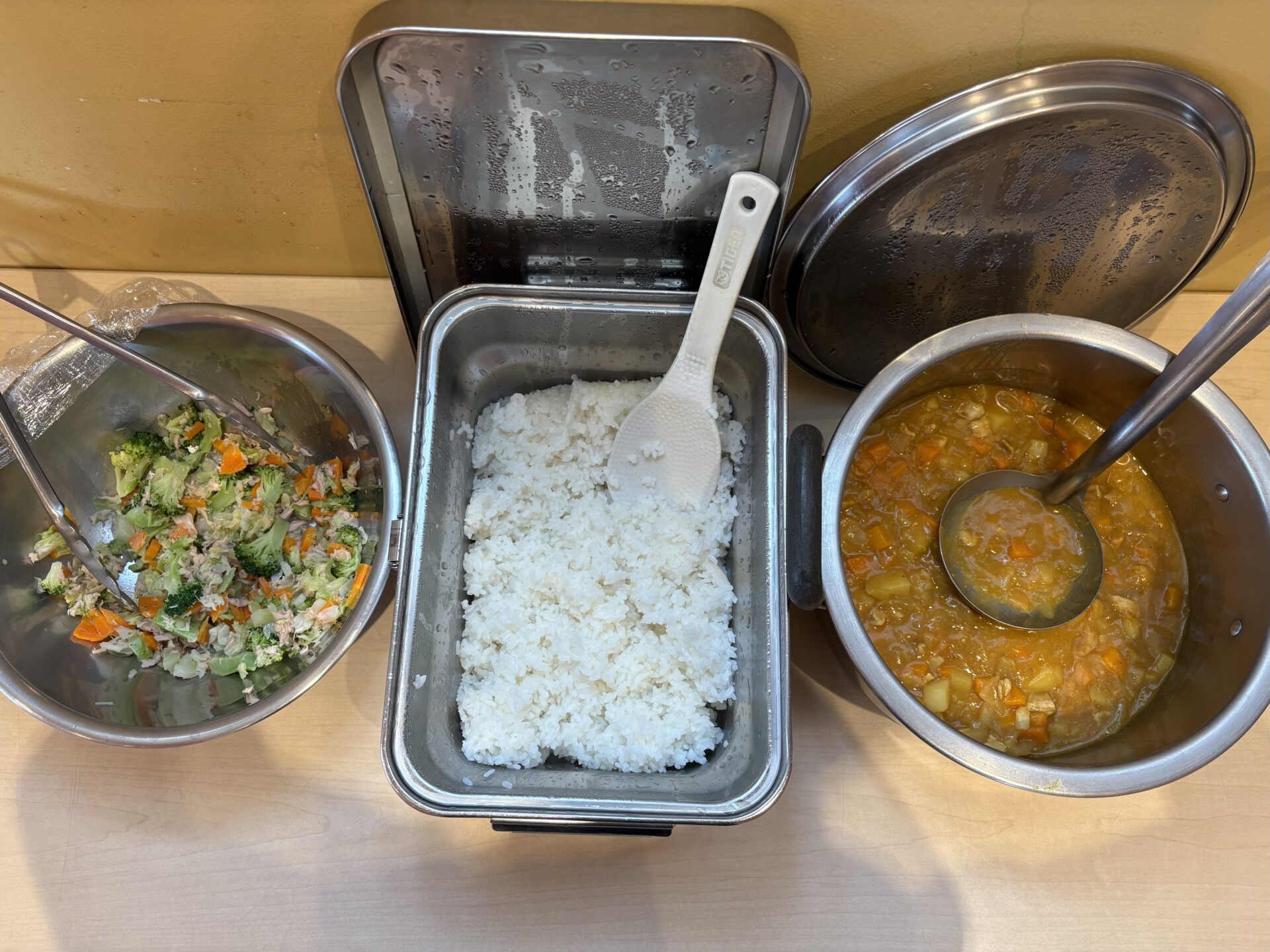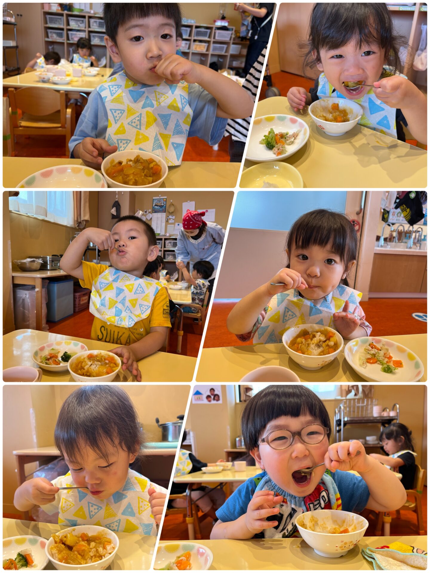 子どもたちは大きな口を開けて嬉しそうに食べていました。大きな鍋に入っていたカレーやお米も空っぽになる程たくさん食べていましたよ🤭出来立ての温かい給食を食べると、とても幸せな気持ちになります♡野菜やお米を育ててくれる農家さん、毎日大勢の給食を作ってくれる調理員さんに感謝の気持ちを込めて、これからも子どもたちと楽しい給食の時間を過ごしていきたいと思います😌