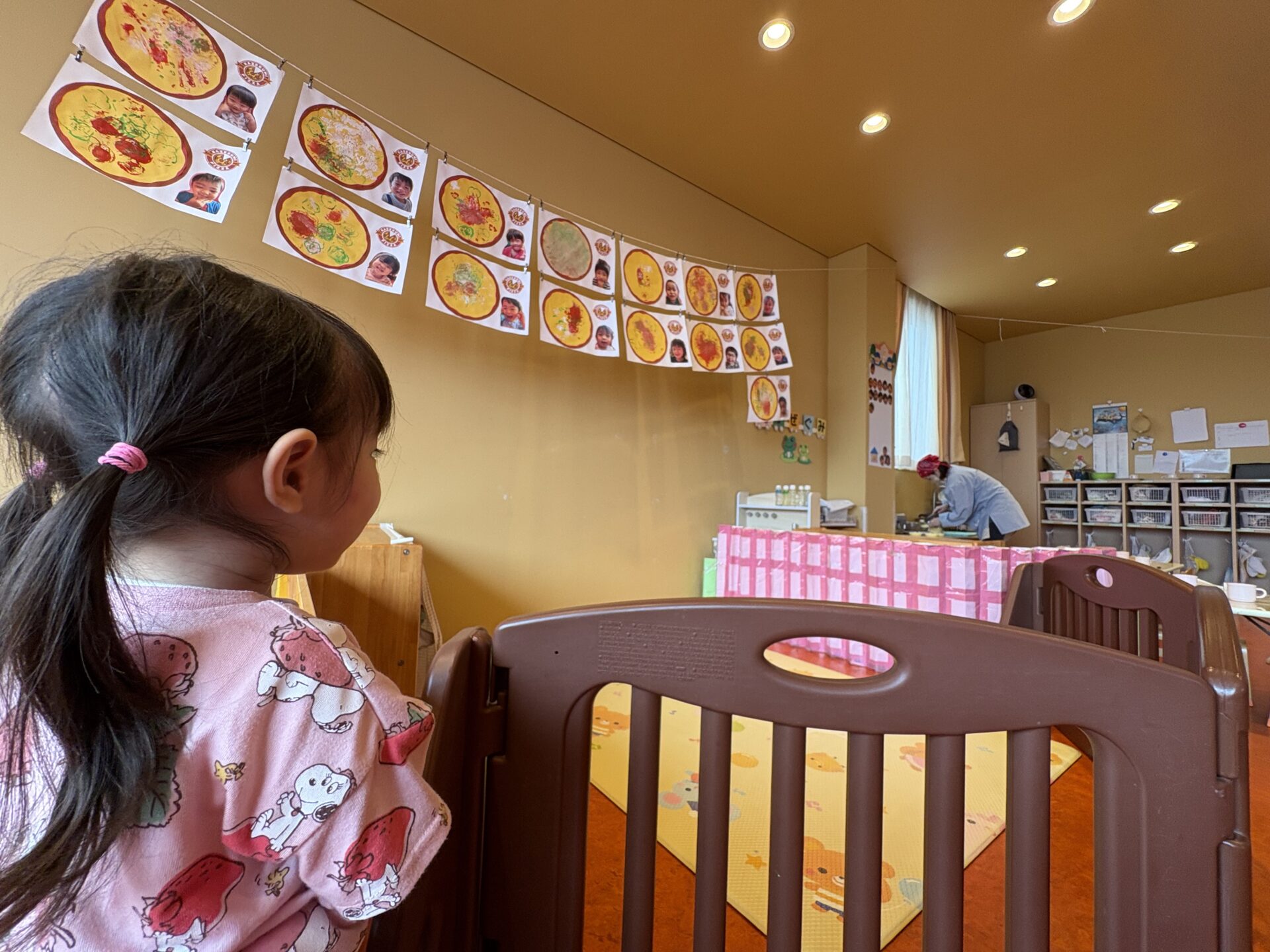 給食の時間が近づき、保育士が配膳を始めると、良い匂いにつられて“今日は何かな〜?🤤”と様子を見ているお友だち。見つけた食べ物を見て、「良い匂いがするね〜!」「あれはりんごかな?」と今日のメニューを想像中🤭一体なんでしょうか…♪