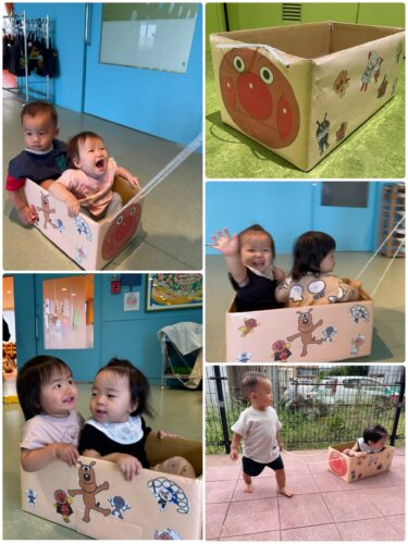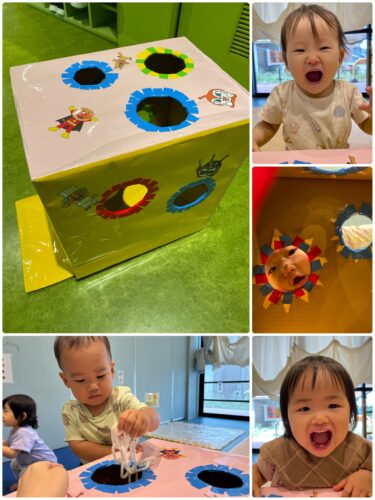 また保育者が「いないいない…?」と声をかけると、穴の部分から覗いて、勢いよく「ばあ!!」ととびきり可愛い笑顔を見せてくれる子どもたちです☺️