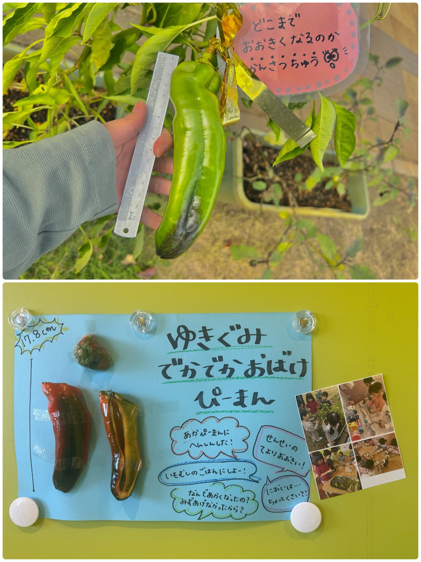 20cm?!巨大ピーマン栽培中!(3歳児ゆき組)