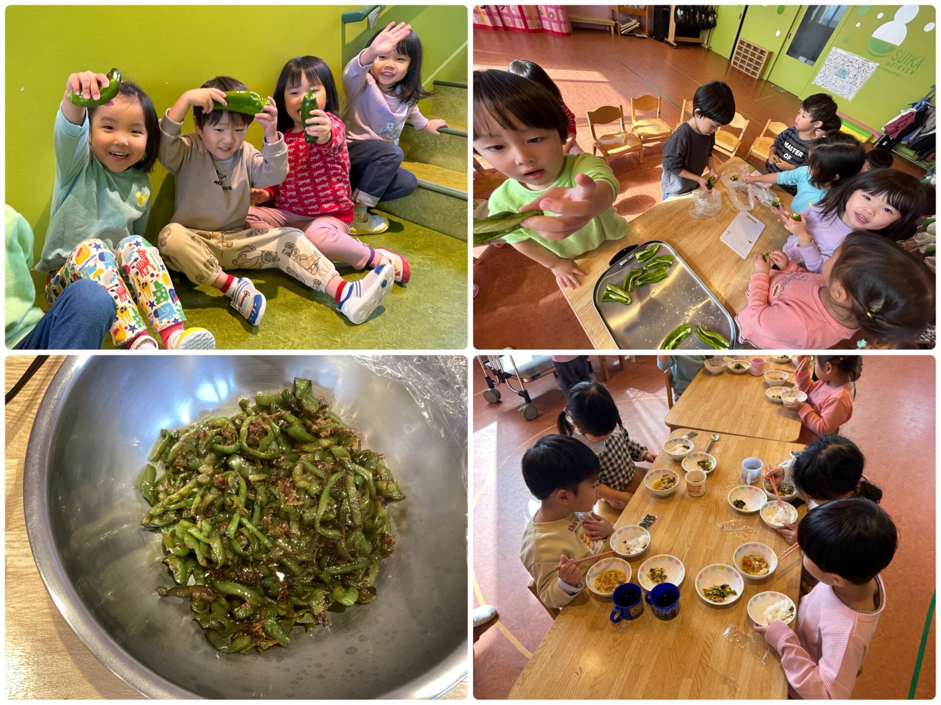 ピーマンを育てる経験を通して、食材に興味を持ったり、友だちと一緒に達成感を感じたり、思いやりの気持ちを育んでいけたらいいなと思います🍀