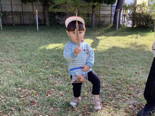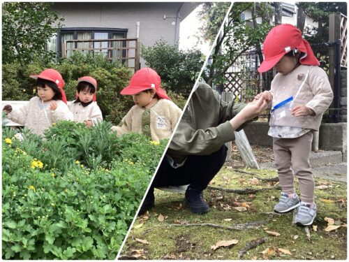 お散歩で行った公園で、子どもたちがいろいろなものを見つけていました👀