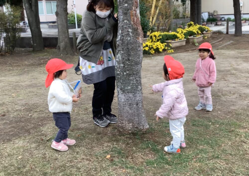 園庭で遊んだりお散歩に行ったりしていると、紅葉や冷たい風に秋が深まったことを感じるこの頃。