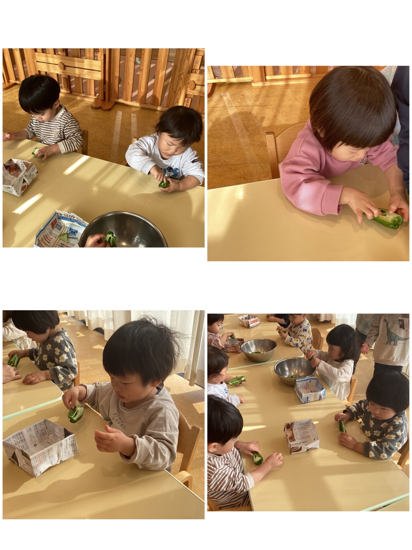 初めての時に比べ、ピーマンに積極的に触れ、種取りをしていました。種を一粒ずつ取る子やわたごと種を取ることをマスターした子もいました。