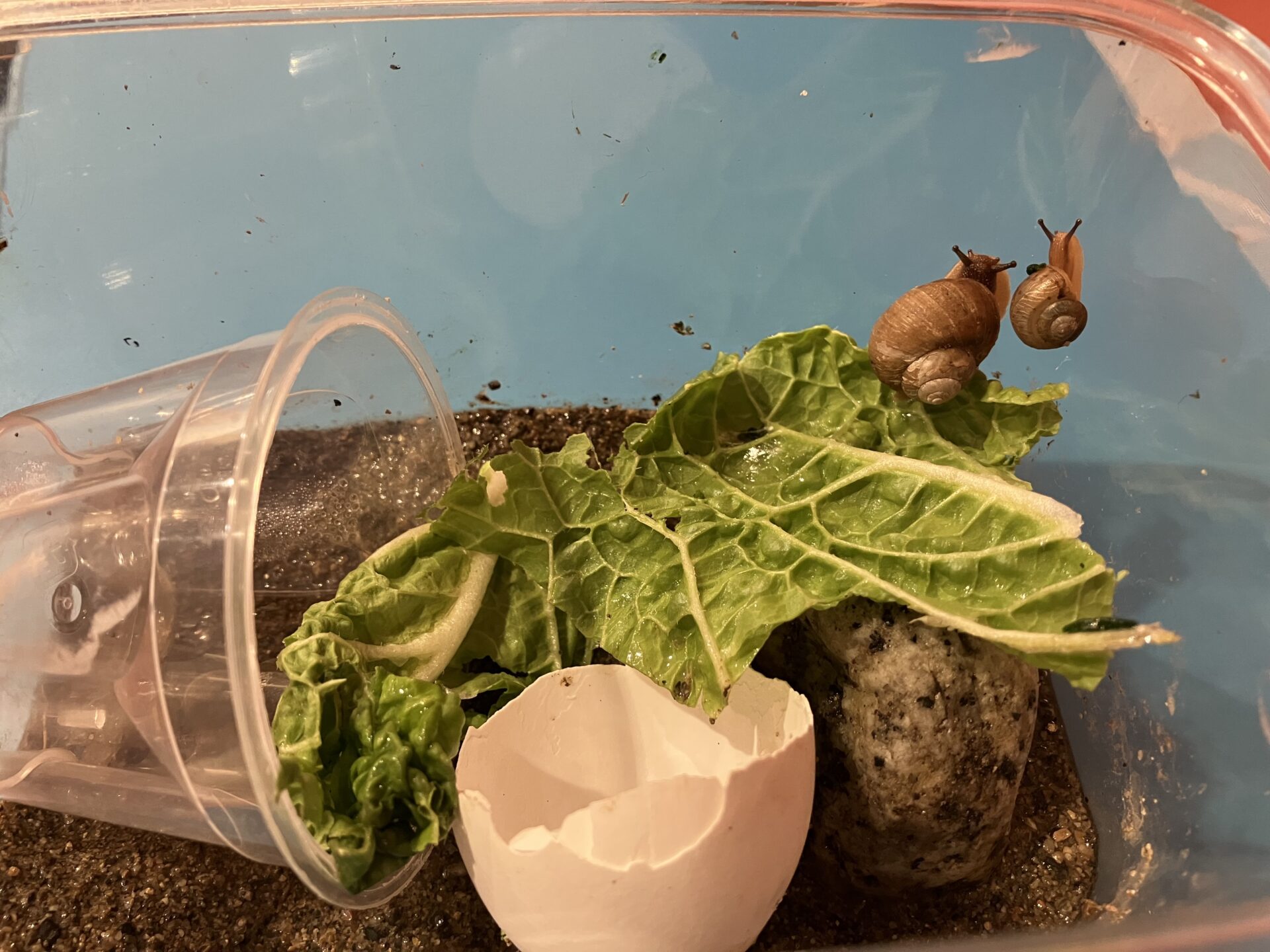 昨年、姉妹園のすいか小規模保育園からやってきたカタツムリです。