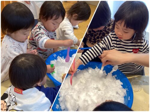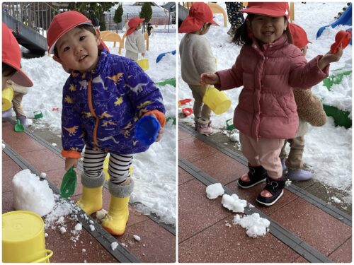 雪に触れたり外に出て「つめた〜い」「寒いね!」と、冬ならではの冷たさを感じています⛄️