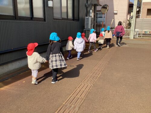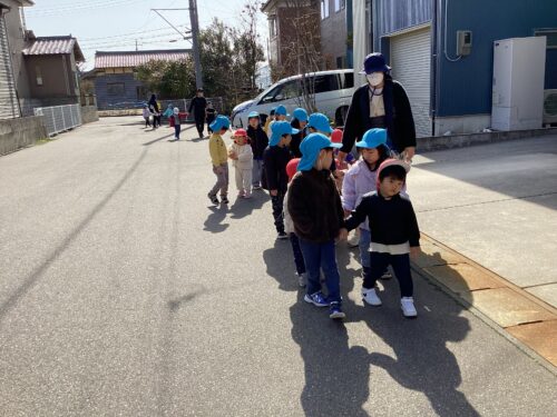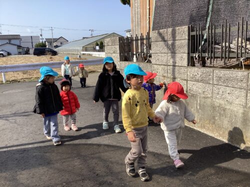 この日は、うみ組(1歳児)のお友だちとお散歩に行きました。