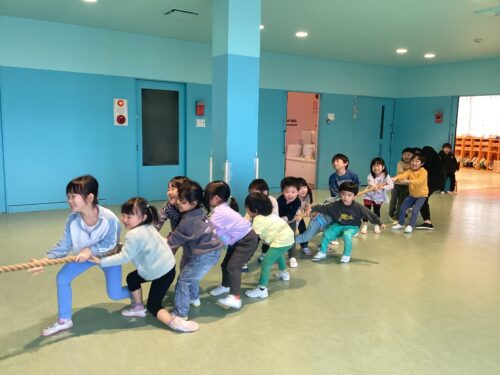 別日には、ゆき組(3歳児)と綱引き大会を行いました!!