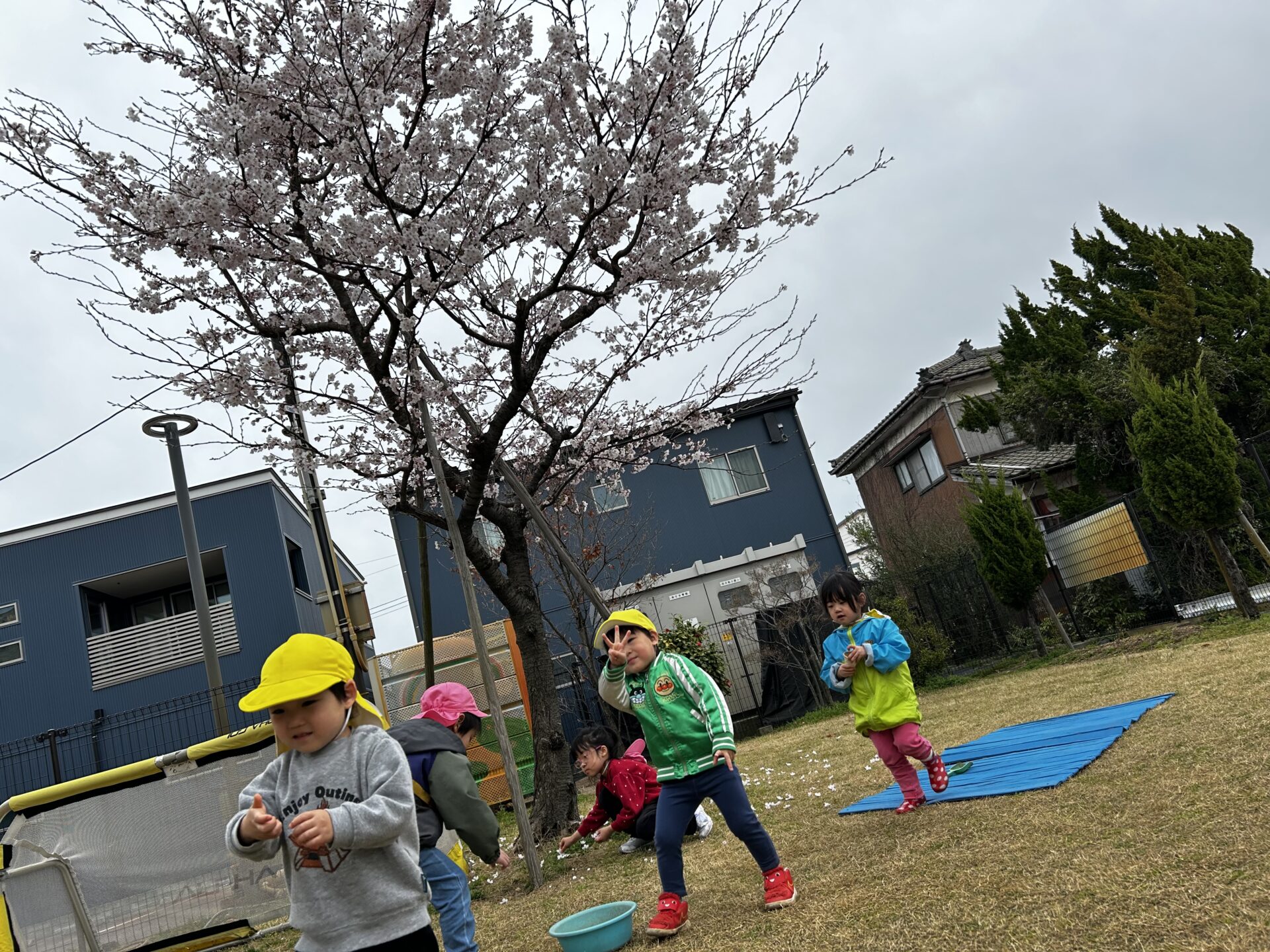 子どもたちが桜の花びら取りに夢中になっていました😆