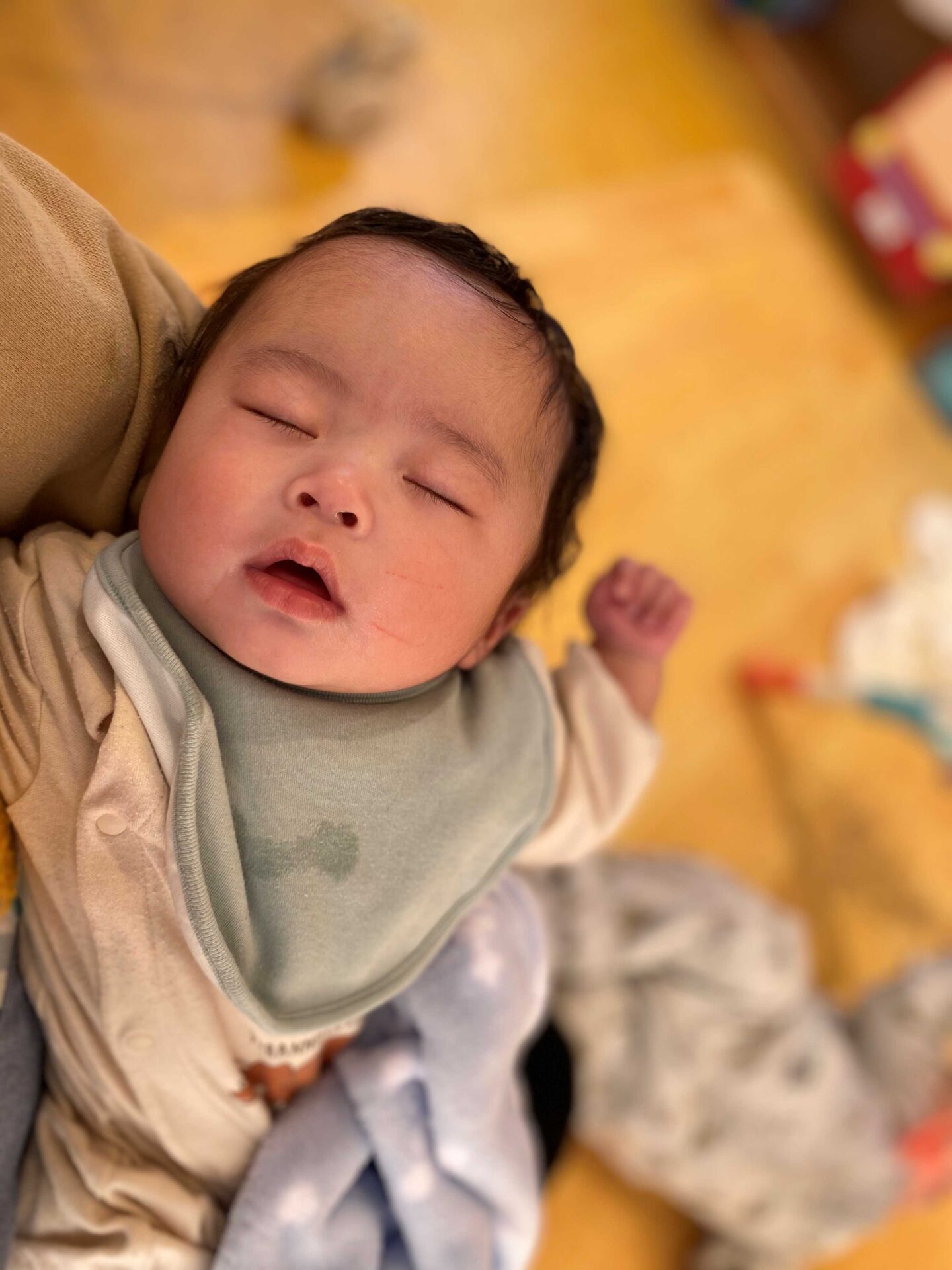 今年のすいか組には、4人の笑顔の可愛らしいお友だちが来てくれました😊保育者とのふれあいあそびでは笑顔を見せてくれており、お腹が空いた時や眠たい時には、表情や仕草で表現してくれています。少しずつ園生活に慣れてきているようで嬉しく感じています♬