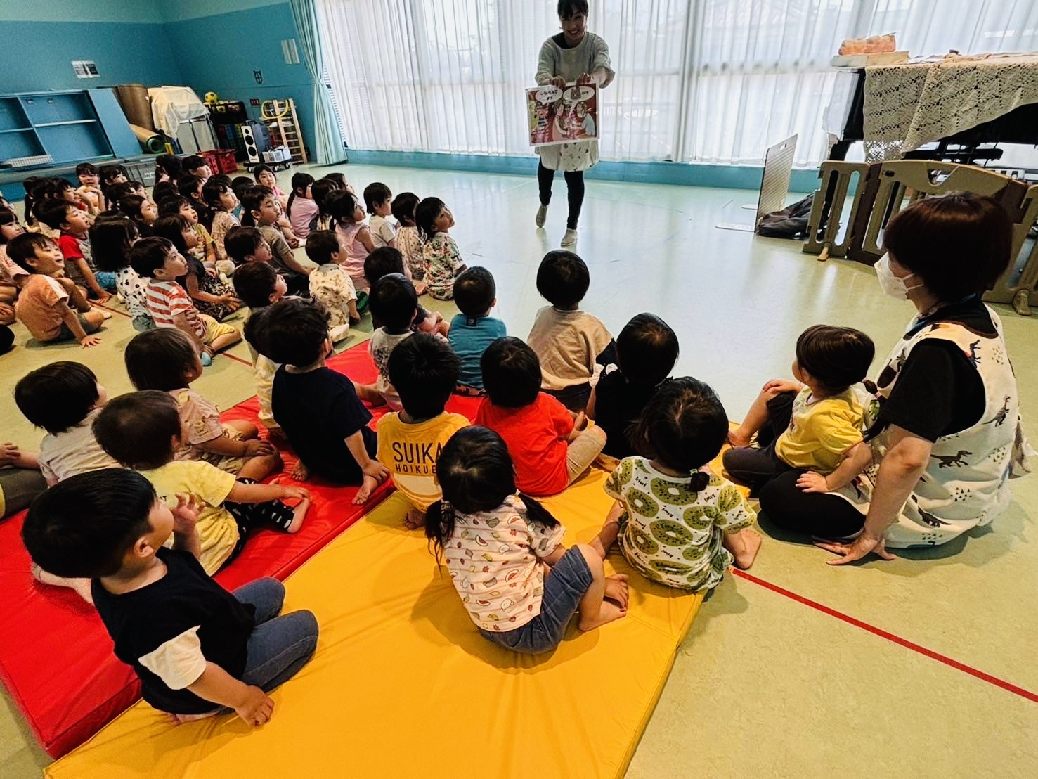 今年度、子ども達の不安軽減を目標に2歳児さん以上で検診の受け方について、看護師からお話をしました。