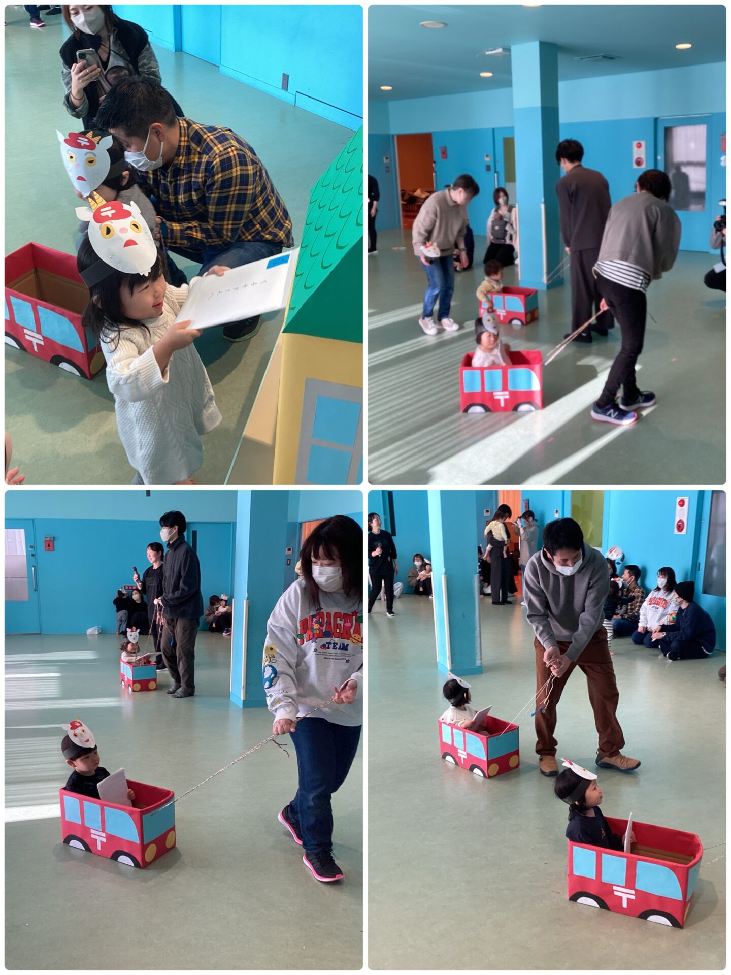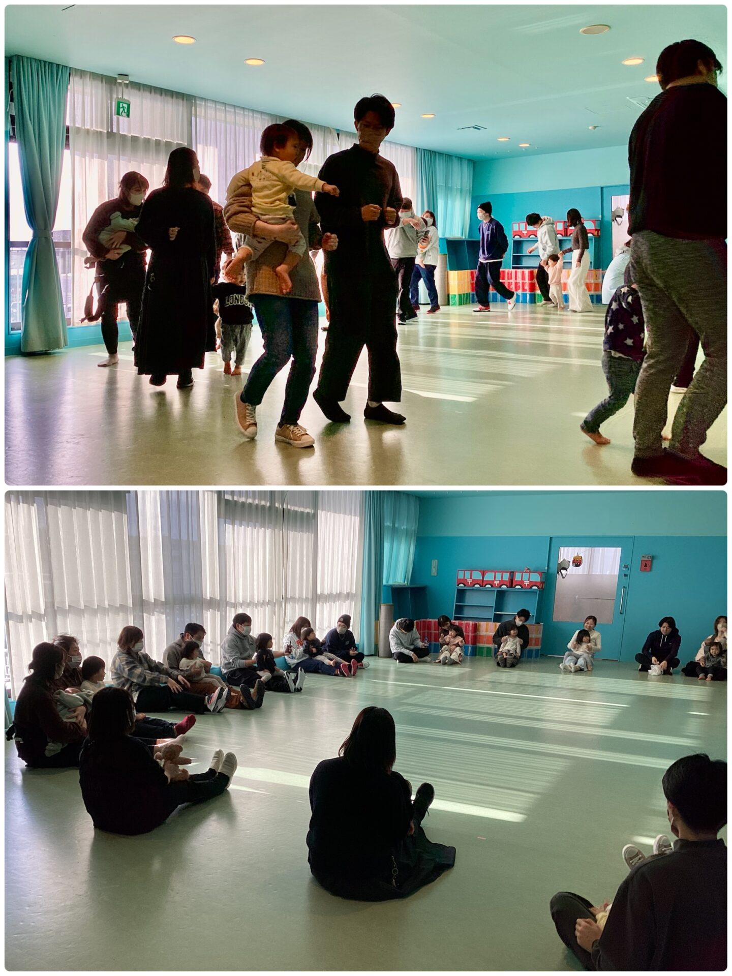 次は“親子でメリーゴーランド“や“バスに乗って”等、子どもたちが大好きなふれあい遊び🎶大好きなお家の人と一緒だといつも以上に子どもたちの笑顔が溢れていてとても微笑ましい光景でした✨