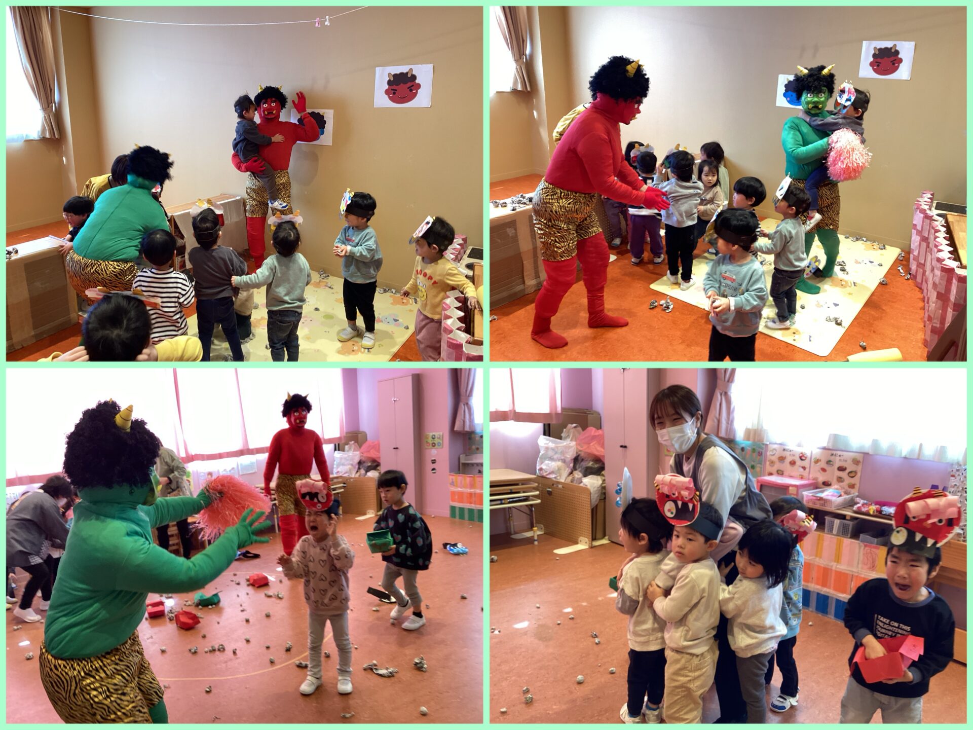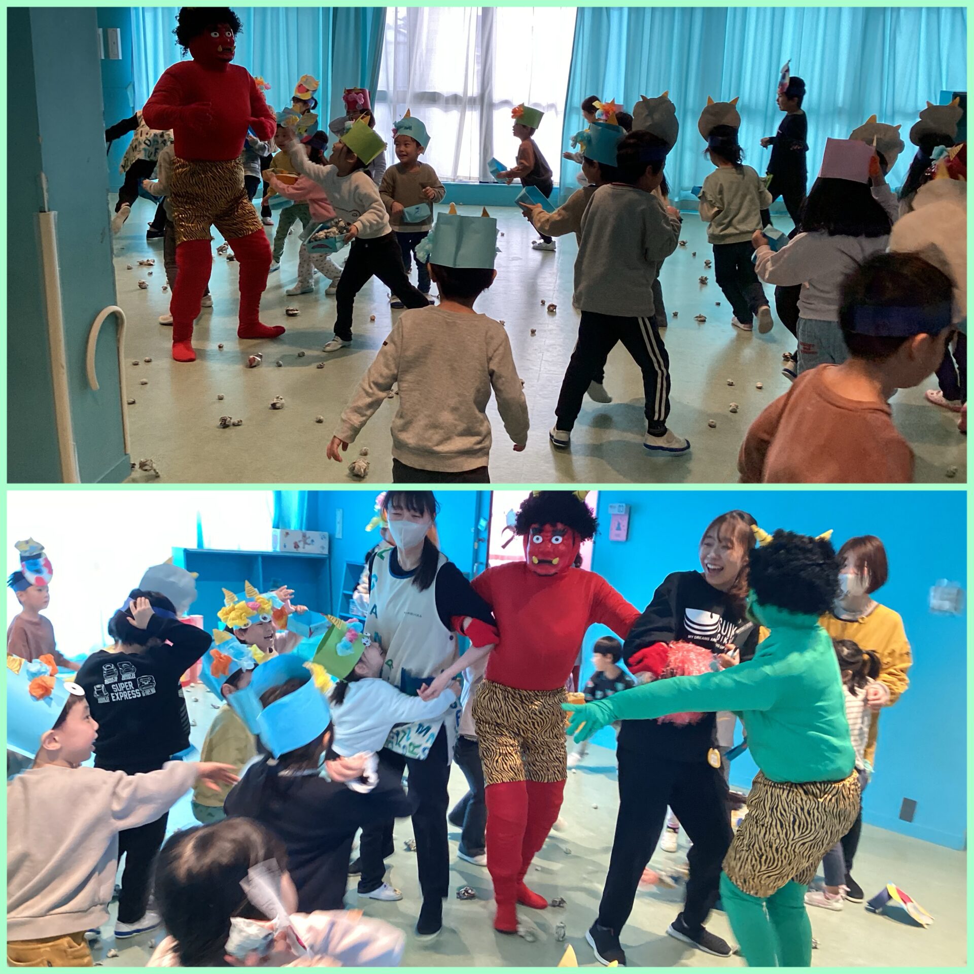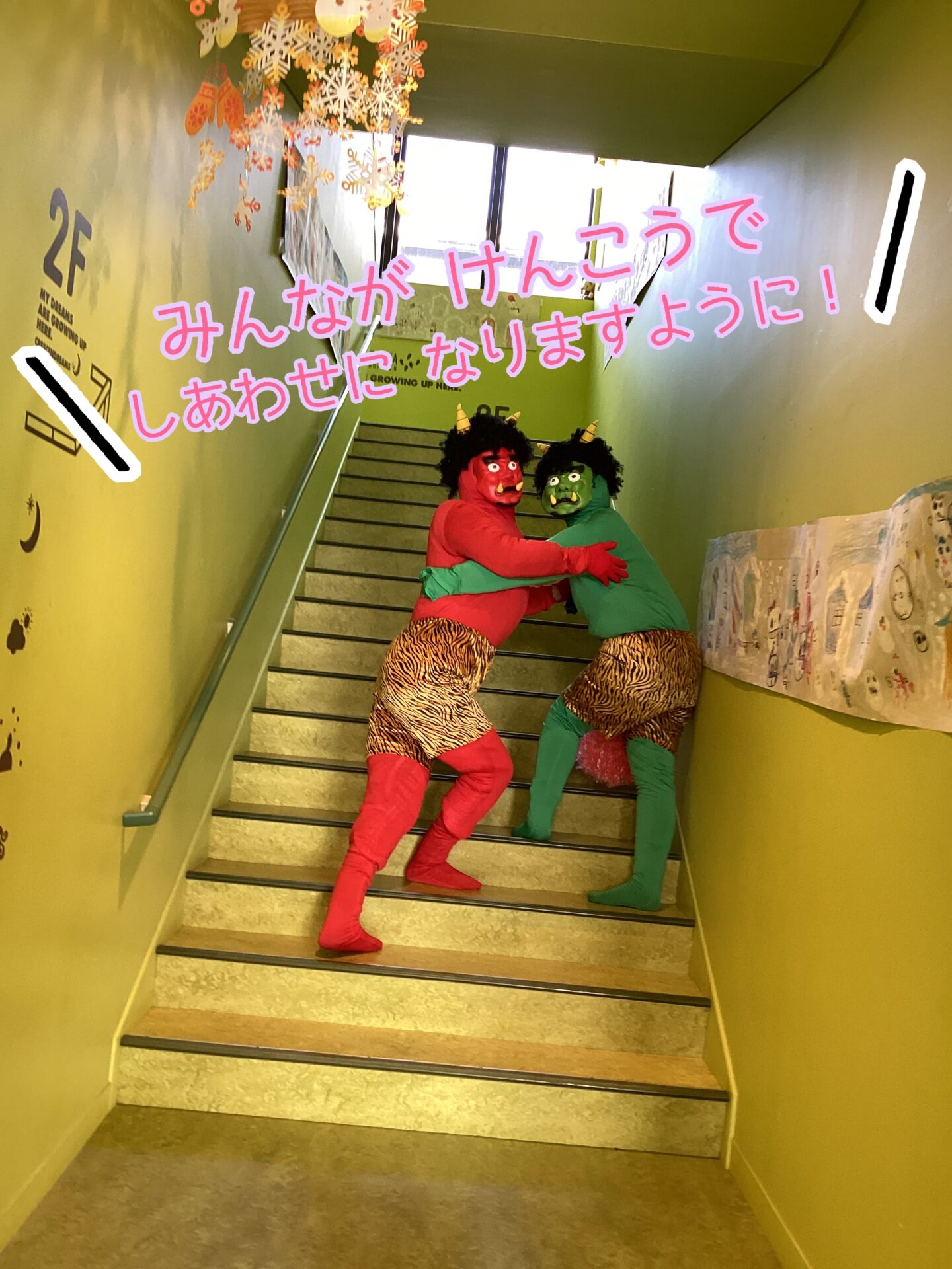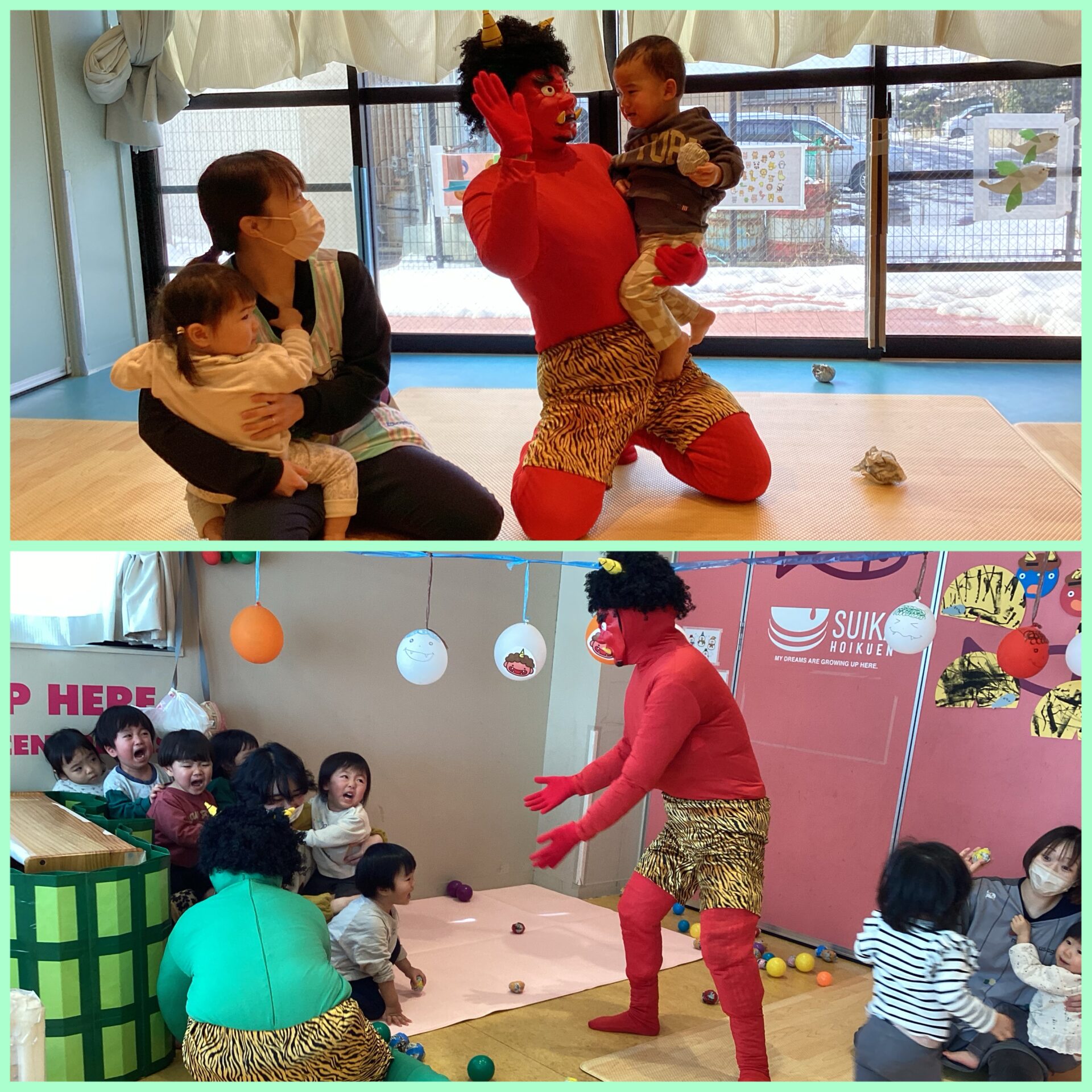すいか保育園には、赤鬼と緑鬼が登場しました!(みんなと仲良くなりたい優しい鬼です😊)